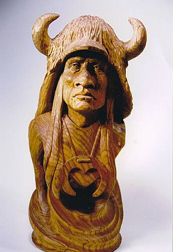 helper was the buffalo, that is why he wears a buffalo headress when he