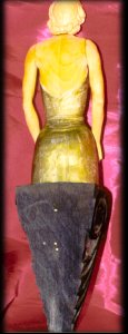 dress is gold metal paint, and the hair is soaked with a wood hardener