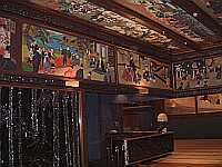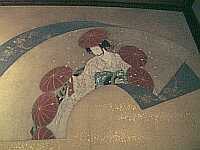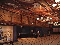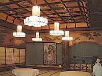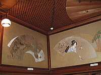 他にも美人画の巨匠、鏑木清方が天井や欄間に画を描いた清方の間もあり、こちらも豪華ではありますが落ち着いた部屋です。清方の絵の写真を自由に撮影できるのは日本でここだけでしょう。フラッシュもOKなので私のほうが保存を心配してしまいます。