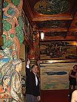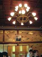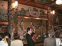 その中でも一番豪華なのは漁樵の間と呼ばれる部屋で、直径2尺の巨大な檜の床柱に極彩色のレリーフがされているのを始めとして部屋のいたるところが金箔と極彩色の嵐です。昔、この部屋で行われていたであろう結婚式などの宴会がどんなに絢爛豪華だったのかをつい思いを馳せざる得ませんでした。