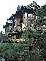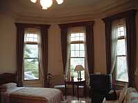 国の登録文化財ですさて、今回宿泊したのは花御殿ではなく、初代の山口仙之助の時代、明治に建てられた洋館の一室でした。一見ビクトリア様式の洋館ですが、瓦葺で唐破風様式の玄関を備えた珍しい建物です。しかしながら、内部はオーソドックスな本格的な洋館であり、私達はアメリカのNew England地方で昔訪れた様々なInnを思い出しました。(ボストンのA Cambridge House、セーラムのSalem Inn、ニューハンプシャー州のKennebunkport Innなど。特に Cambridge Houseは雪の晩に自分で暖炉を燃やしたこととと朝の美味しいワッフルがいい思い出です。)
