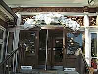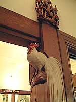 金谷ホテルから養子に来た山口正造の影響か、館内は金谷ホテルをも上回る量の彫刻・レリーフ類で溢れています。軒下に鳩がとまっていたりなど遊び心があり、また、ちょっと稚拙なところがあっても、それがかえって心を和ませてくれます。